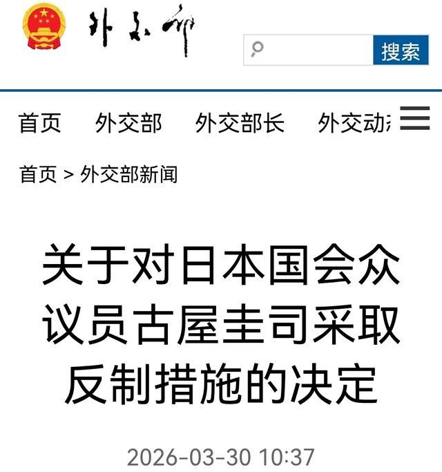 3月30日,中国外交部宣布对日本国会众议员古屋圭司实施制裁,冻结其在华财产、禁止境内组织和个人与其交易合作、不准其入境(包括香港和澳门)。这不是中方第一次对日本政客采取反制措施,也绝不会是最后一次。古屋圭司的斑斑劣迹,让他成为中方不得不“关照”的对象。